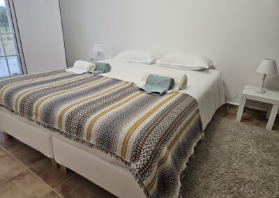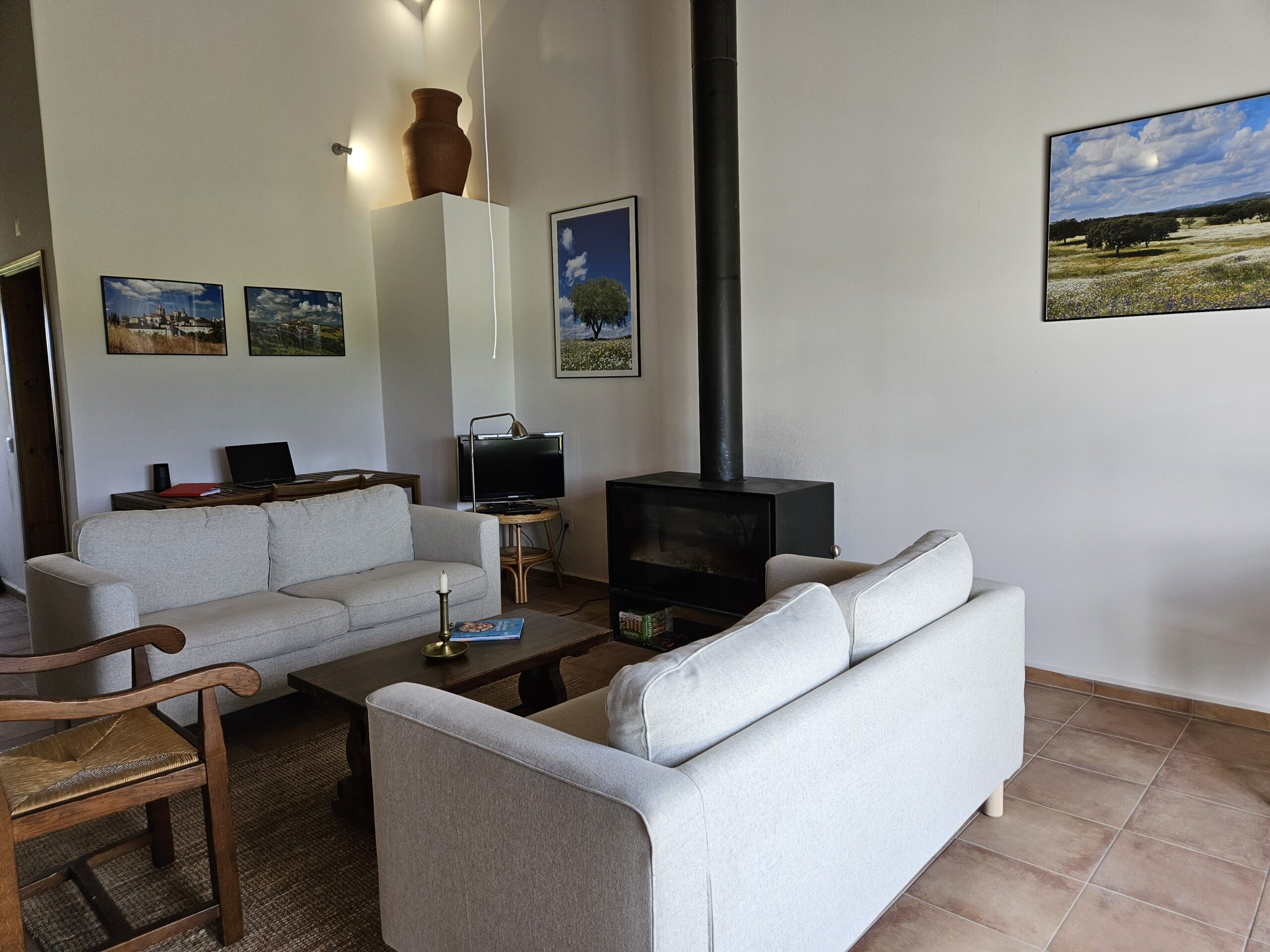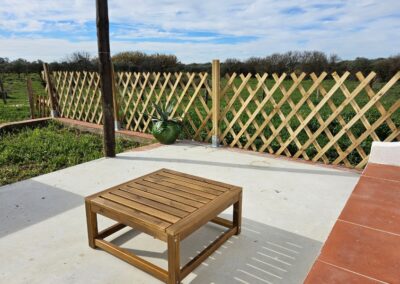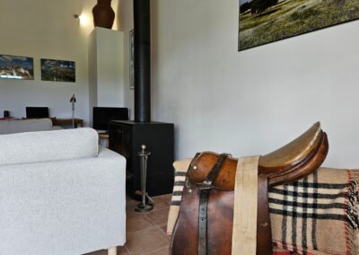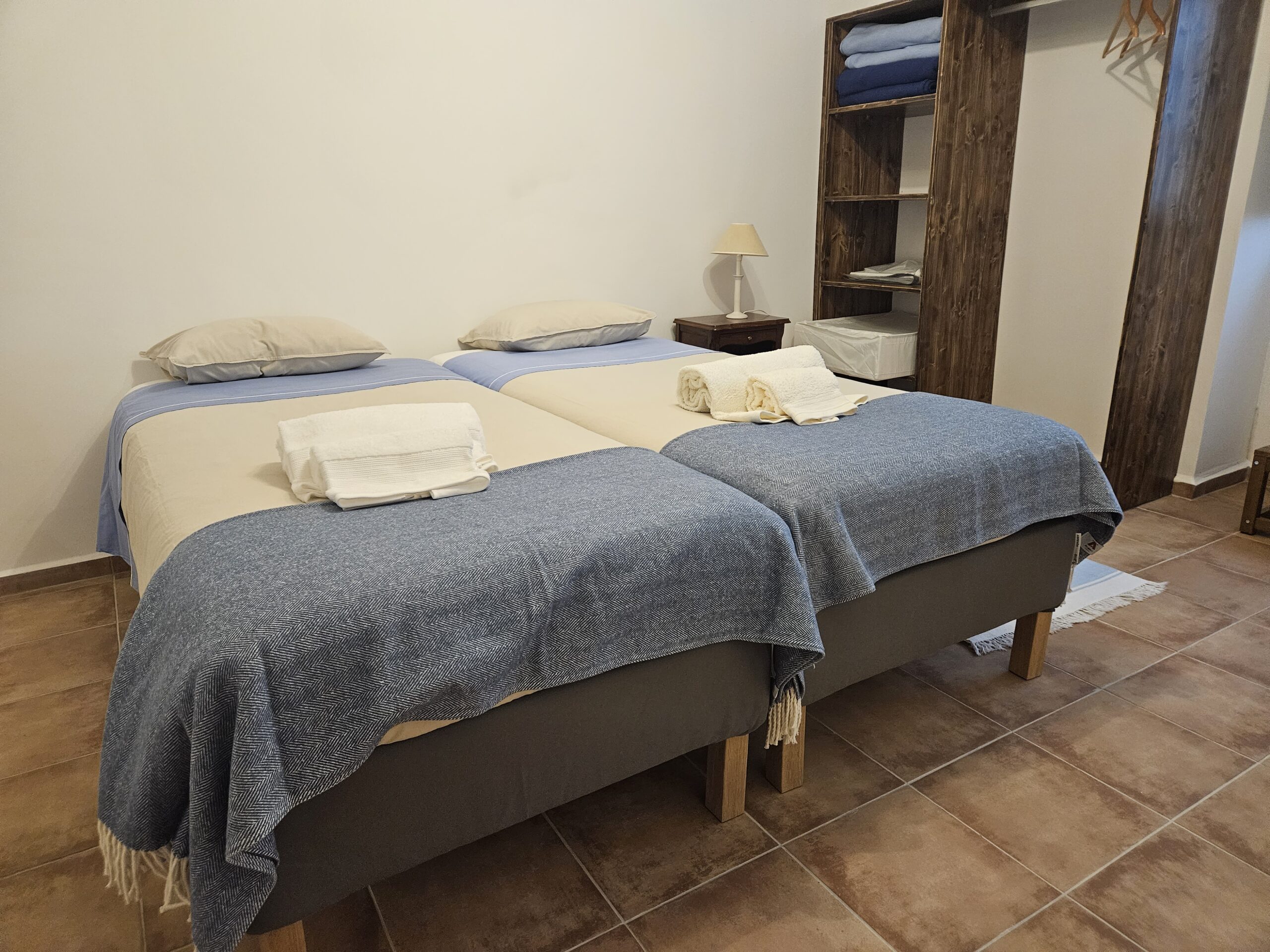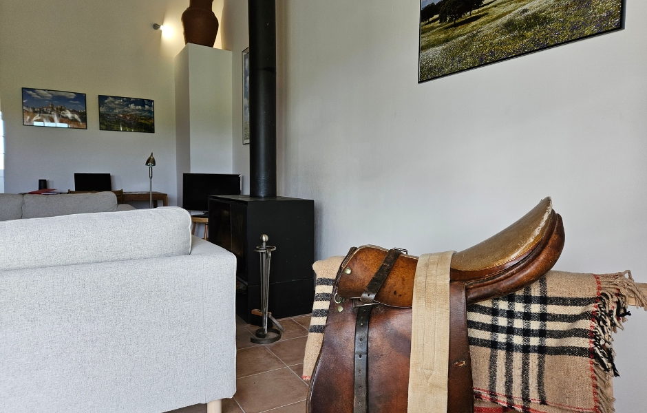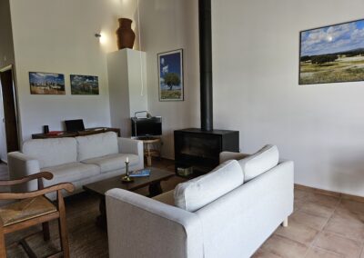 Description de la bergerie : 90m2, 2 chambres, 1 salle d’eau wc, buanderie avec lavabo wc et lave-linge, grand salon avec cuisine ouverte, poêle panoramique, terrasse, jardin et orangeraie privatifs de 500m2.