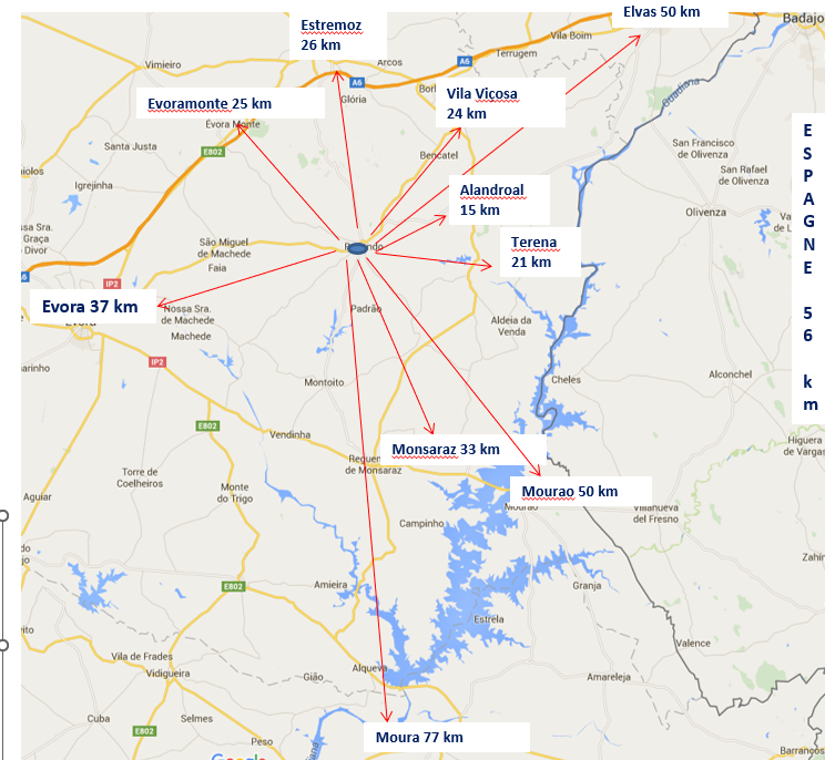 - Tour des villages traditionnels: Vila Viçosa (palais royal), Monsaraz (citadelle sur un nid d’aigle face à l’Espagne), Evoramonte, Borba, Arraiolos, Moura, Mourão, Serpa, Redondo
